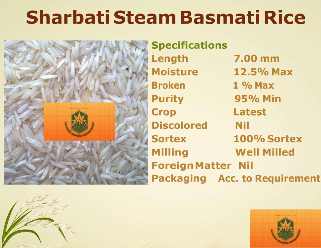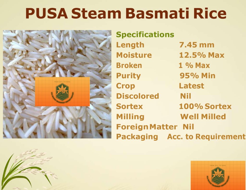 Perfect for bulk buyers, wholesalers, and exporters, our 1121 Steam Basmati Rice is available in customized packaging. Order now for the finest quality basmati rice at competitive prices.